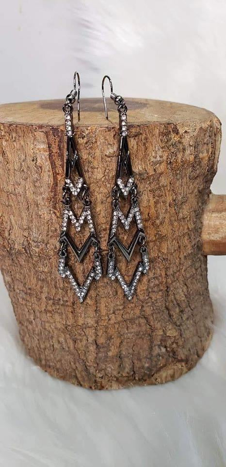 Gunmetal black and dripping in rhinestones. This Fashion Fix Exclusive pair of earrings is gorgeous.
