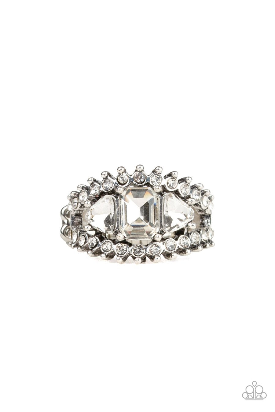 Paparazzi Packin Heat - White - Gems and Rhinestones - Silver Band Ring