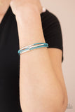 Cylindrical silver beads slide along shiny Mosaic Blue cords, creating edgy layers across the wrist. Features a magnetic closure.